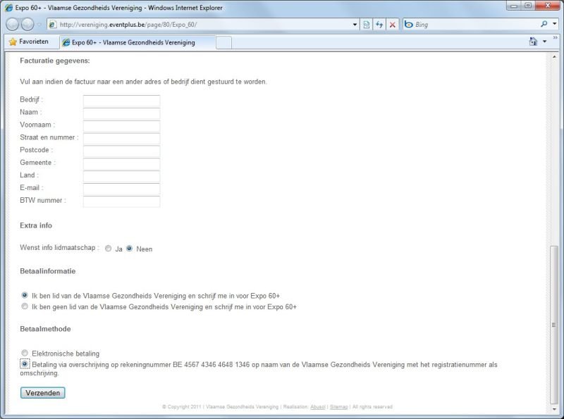U kan bepalen dat een individuele inschrijving slechts toegankelijk is tussen bepaalde data of voor een maximum aantal deelnemers. Na het verstrijken van de uiterste inschrijvingsdatum of het overschrijden van het beschikbaar aantal boekingen wordt de inschrijving afgesloten en een melding hiervan getoond.